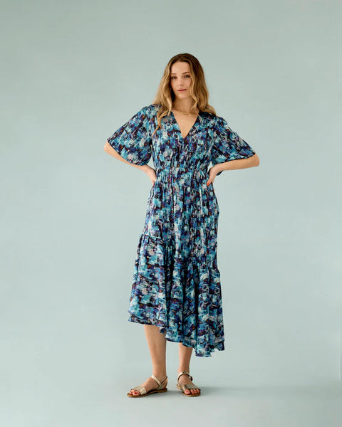 Kimbo Dress - Blue Abstract Paint