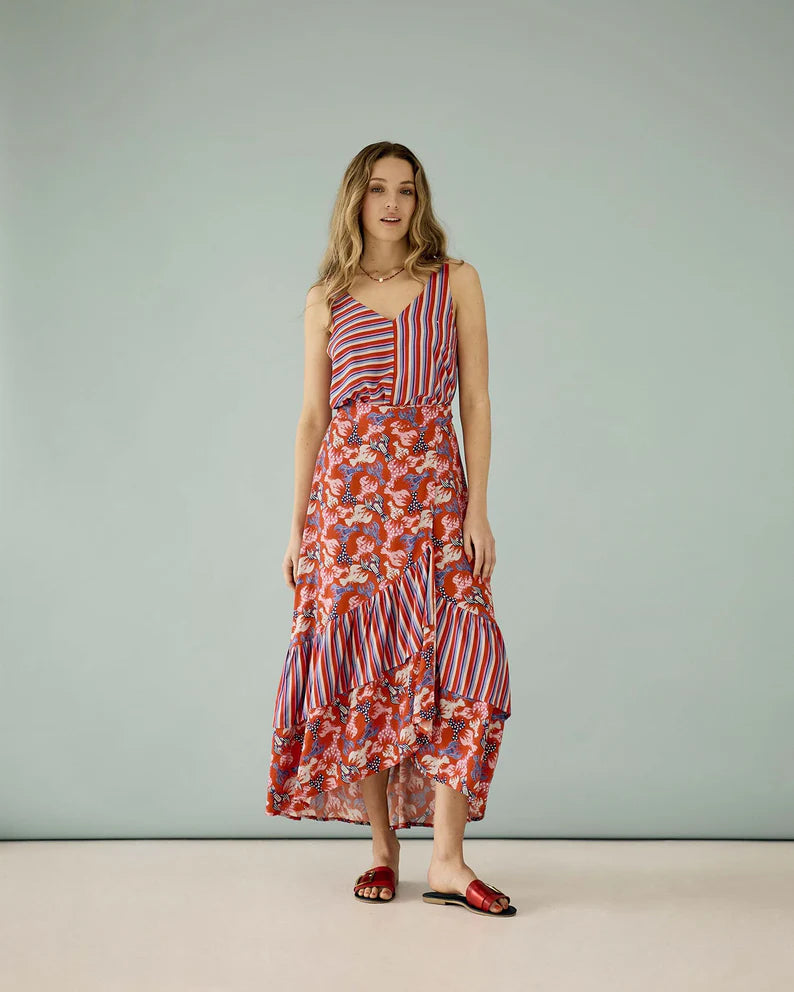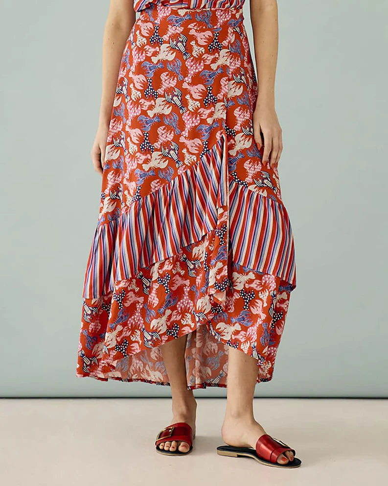 Kick off summer right with our jungle fever Wrap Skirt! This versatile garment features a double frill in a contrast print for added fiesta (hello Blue Rio Floral!), and can be easily dressed up or down. Its adustable fit, thanks to the self-tie, makes it purrrfect for any body type.
