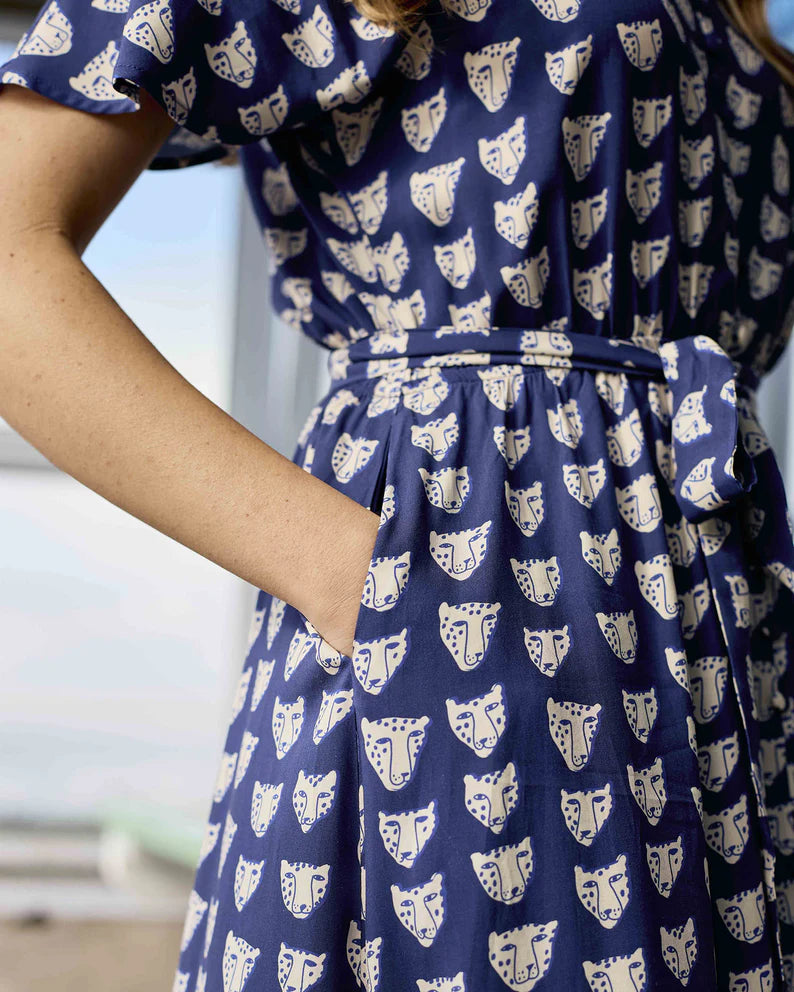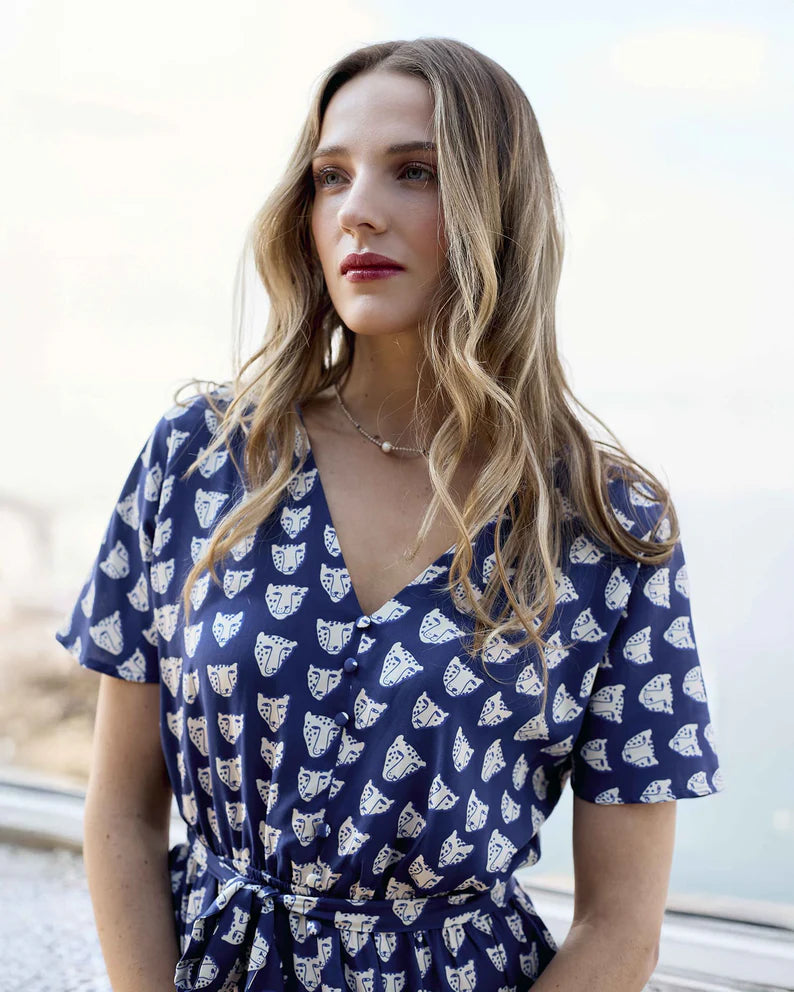 The Wren Dress takes flight again—this time with a fresh set of upgrades. Longer in length, finished with fabric-covered buttons, tied together with a matching belt, and (yes!) complete with pockets. A classic silhouette with playful charm!