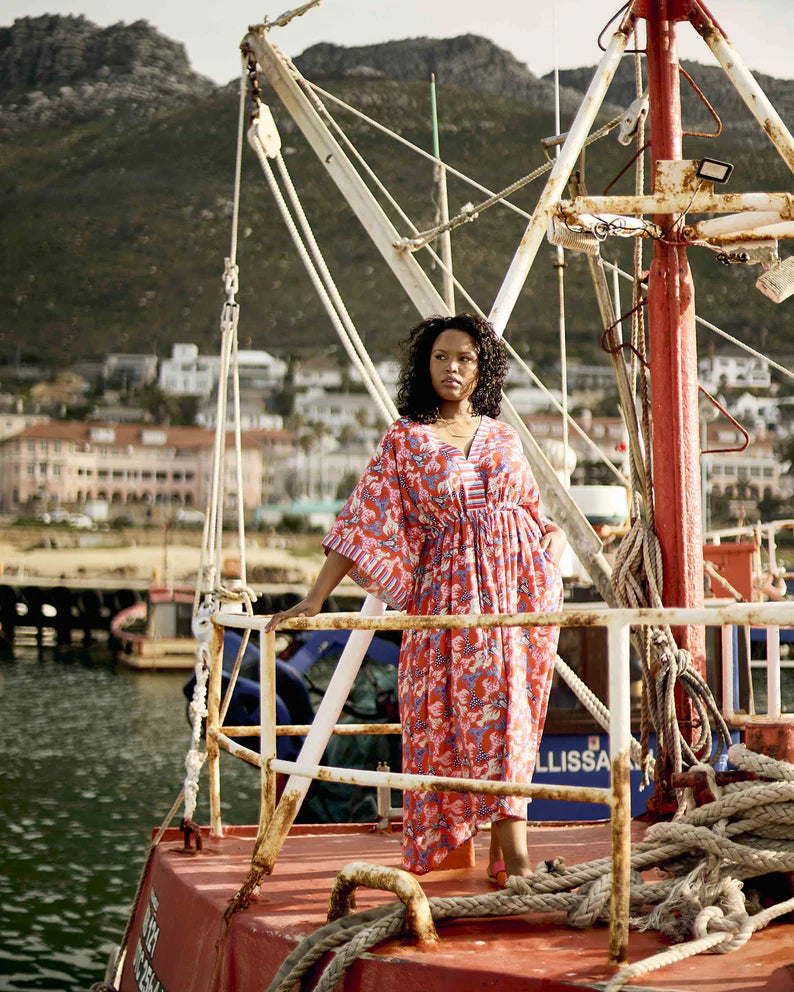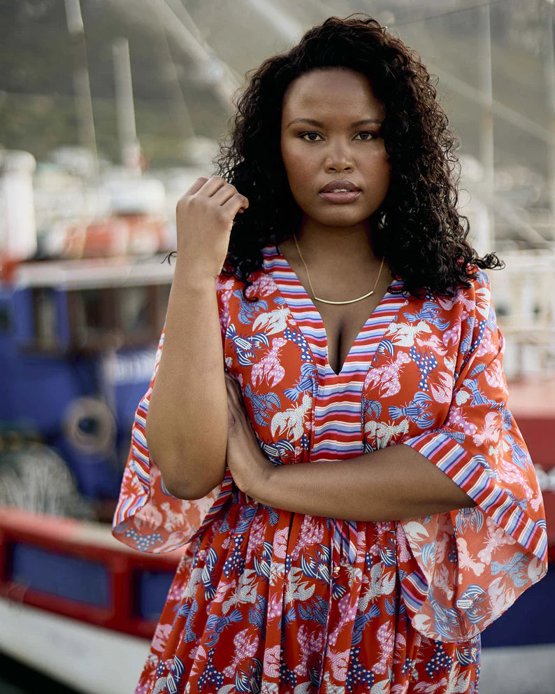 Hannah is 176cm tall and wears a size 32 (Small). Sisipho is 172cm tall and wears a size 40 (XXL).