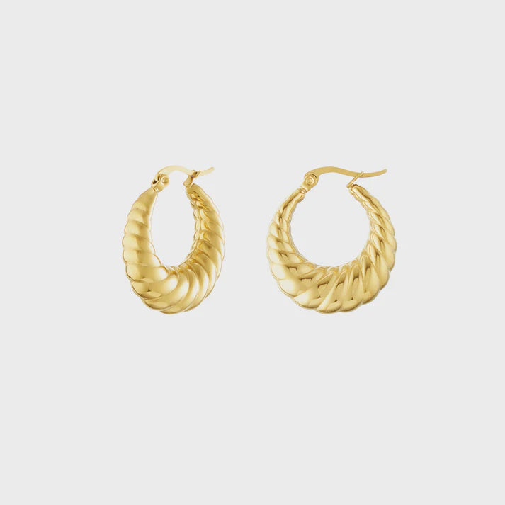 ORA Croissant Gold Plated Hoops are made from stainless steel with thick gold plating that is waterproof and tarnish resistant.