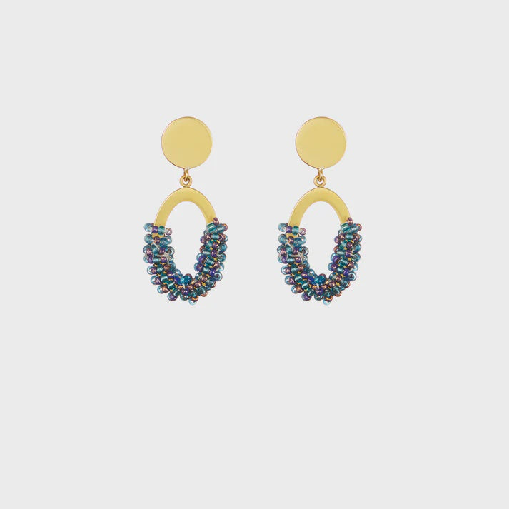 ORA Monifa Statement Gold Plated Earrings are handmade from fine Italian brass and gold plated in 14ct Yellow Gold. with sterling silver ear pins from our Beaded by ORA collection