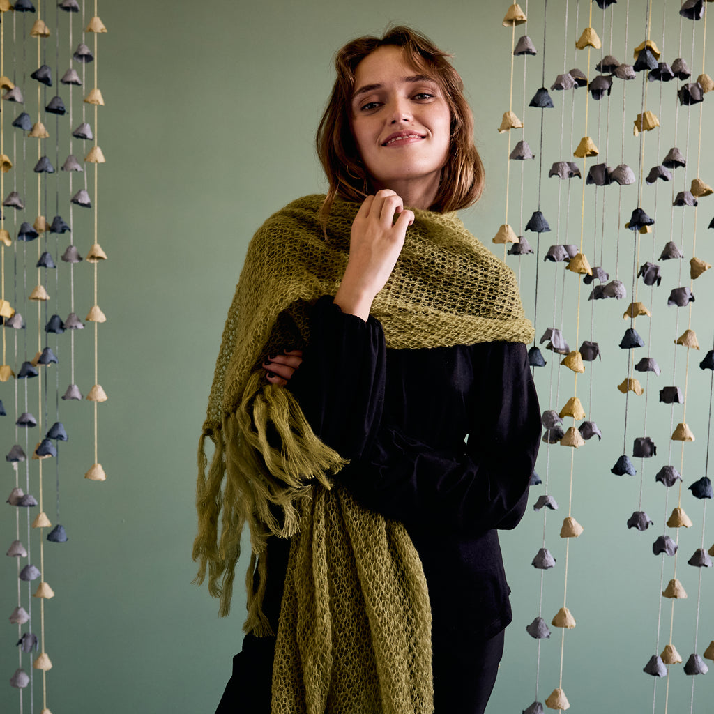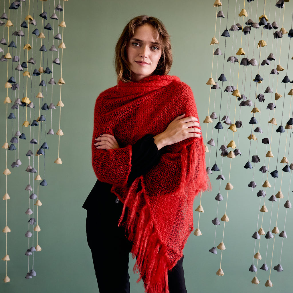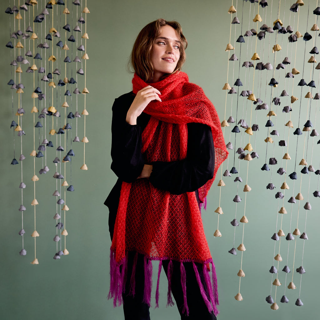 The large shawl features long tassels for instant glamour. Drape the shawl over your shoulders, wear it long as an over-sized scarf or fold it around your neck to fit under a jacket. It is a wardrobe classic which will serve you well for years to come.