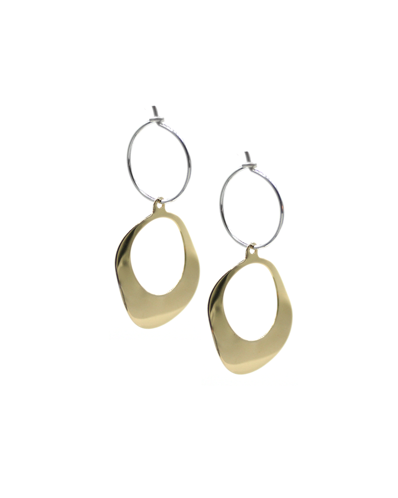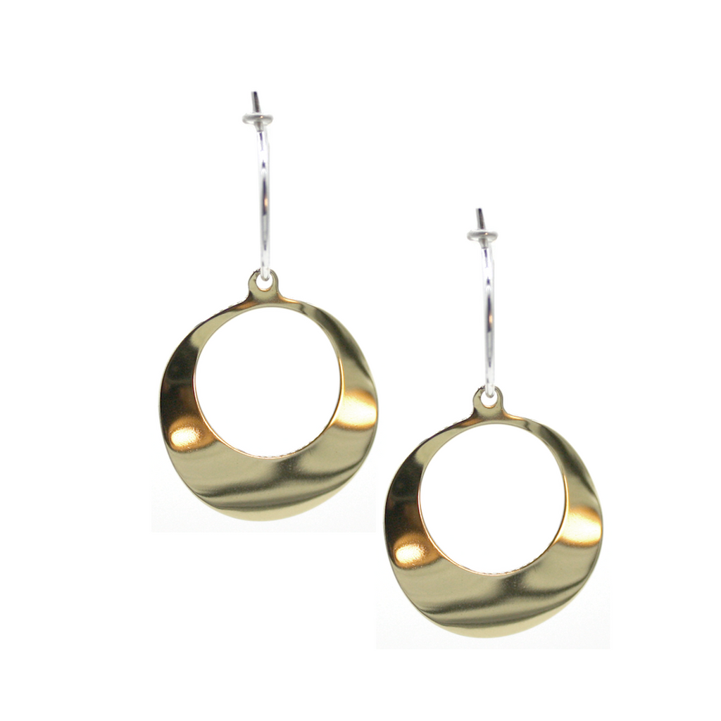 Two brass rippled disks (20mm diameter) with inner space on sterling silver hoops (13mm diameter).